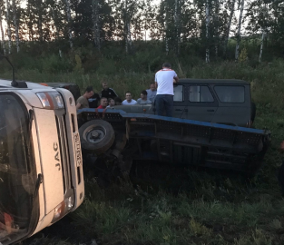 Вчера вечером, 30 июля, в Ульяновской области на трассе возле села Уржумское перевернулся грузовик, который перевозил автомобили УАЗ.