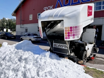 Льдоуборочный комбайн срезал старый слой льда. В Управлении спортивными сооружениями отметили, что это стандартная процедура. Таким образом ледовую арену готовят к новому сезону.