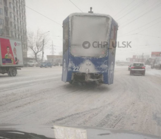 Сегодня, 26 декабря, в Ульяновске около автобусной остановки «УльГЭС», которая находится на улице Железной Дивизии, сошел с рельсов трамвай №22.