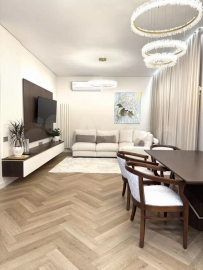 Продавец уверяет, что в стильной трехкомнатной квартире площадью 142 квадратных метров сделан дизайнерский ремонт из современных, качественных материалов. В распоряжении владельца будут три спальни, кухня площадью 50 квадратных метров и гардеробная комната.