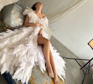 Модель, певица и ведущая телеканала «МУЗ-ТВ» Настя Негода облачилась в перья и ненадолго превратилась в ангела. Нежный и соблазнительный образ оценили подписчики.