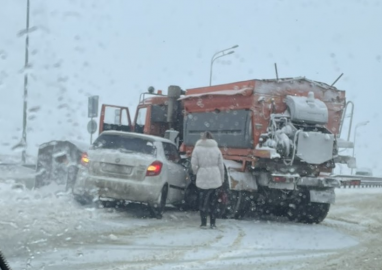 Очевидцы в социальных сетях сообщают о втором за день ДТП на Президентском мосту в Ульяновске. Сегодня, 29 декабря, там автомобиль «Шкода» врезался в снегоуборочный КамАЗ.