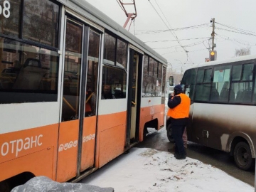 Сегодня, 4 февраля, в северной части Ульяновска столкнулись микроавтобус и трамвай. ДТП произошло возле парка Победы.