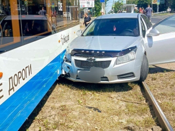 Сегодня днем, 19 июля, в Железнодорожном районе Ульяновска автомобиль Chevrolet Cruze врезался в трамвай.