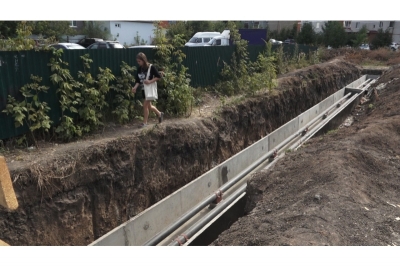 По информации МБУ «Стройзаказчик», на данный момент работы по устройству теплосетей на объекте уже завершаются, в траншею уложены бетонные лотки для теплотрассы.