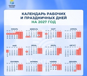 В 2027-м предлагается перенести субботу 2 января на пятницу 5 ноября, воскресенье 3 января на пятницу 31 декабря, а субботу 20 февраля на понедельник 22 февраля.