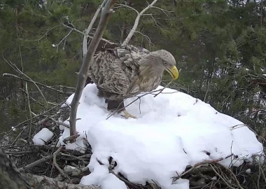 - Несмотря на разгар зимы и крещенские морозы, орланы приступили к подновлению гнезда. Видимо, весна не за горами. Пока инициативу проявляет только самец, - говорит Корепов.
