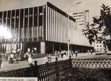 Здание строилось в 1965 – 1970 гг. Трехэтажный магазин, выполненный в лучших традициях советского архитектурного модернизма, был спроектирован группой московских архитекторов. Специалистов из Центрального научно-исследовательского и проектного института торгово-бытовых зданий и туристических комплексов возглавлял А. Б. Варшавера.
