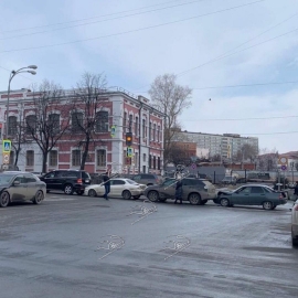 Сегодня, 2 апреля, в центре Ульяновска столкнулись четыре автомобиля. «Паровозик» из трёх иномарок и ВАЗа образовался на улице Гончарова, сообщают очевидцы в соцсети.