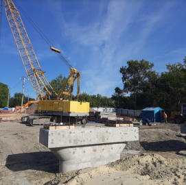 - По опоре №1 полностью выполнено устройство свай и фундамента, сейчас строители формируют тело будущей опоры и выполняют армирование насадки. По опоре №2 у нас достигнута 100-процентная готовность конструкции. На третьей опоре погрузили шпунт и сделали ограждение площадки, выполнили устройство 20-ти буронабивных свай, сейчас разрабатываем котлован. По четвёртой опоре – отбетонировали третью сваю из 20. Также готовим технологическую площадку для сооружения пятой опоры. Работы организованы в две смены, проблем с поставками материалов и оборудования нет, – сообщил Евгений Калмыков.
