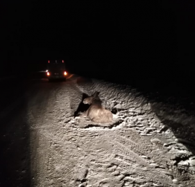 Вечером 7 января в одном километре от въезда в город Димитровград в сторону Мулловки на обочине дороги был обнаружен лось, которого сбила машина. На место происшествия выехали ветеринары и сотрудники охотнадзора Минприроды Ульяновской области.