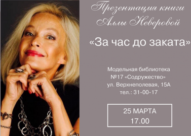 Завтра, 25 марта, в 17:00 в модельной библиотеке №17 «Содружество» писатель Алла Неверова презентует свою первую книгу, посвящённую Ульяновску. Это детективный роман «За час до заката».
