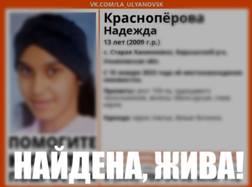 Портал 73онлайн писал, что в Барышском районе Ульяновской области пропала 13-летняя жительница села Старая Ханинеевка. Сегодня, 16 января, стало известно, что её нашли.