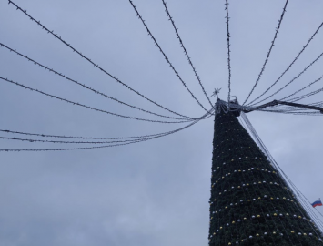 Сегодня, 5 декабря, на Соборной площади в Ульяновске устанавливают световой шатёр диаметром 44,5 метра. Его монтируют над главной ёлкой города.