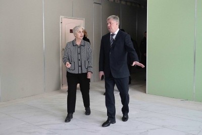 - Заменили изношенные инженерные сети. Ведутся отделочные работы на первом этаже, например, облицовка в медкабинете, санитарных помещениях и местах общего пользования. Полным ходом идет реконструкция столовой: делают оборудованный пищеблок и удобный обеденный зал. Продолжаются работы в спортзале: здесь новая система отопления, также будет современное освещение и отделка, рядом раздевалки с душевыми, - рассказал глава региона.