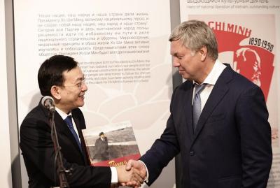 Из города Ханой в Ульяновск привезли выставку вьетнамских художников с портретами Хо Ши Мина. Губернатор Алексей Русских совместно с директором музея Хо Ши Мина Ву Мань Ха открыл выставку, сообщает министерство культуры региона.
