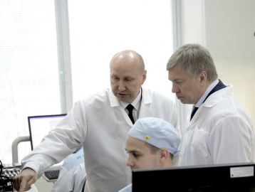 Русских посетил участок СВЧ-модулей и гибридных микросборок. Производство оснащено современным высокоточным оборудованием, одним из которых является уникальная автоматизированная линия поверхностного монтажа. В конце прошлого года ввиду прогнозируемого роста заказов было принято решение о расширении этого производства и создании отдельного участка измерений площадью 400 квадратных метров, что позволило трудоустроить 50 человек.