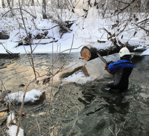 Сегодня, 6 февраля, сотрудники Управления гражданской защиты города продолжили работу по расчистке завалов на реке Сельдь в ульяновском поселке Дачный.