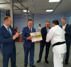 Российский Союз Боевых Искусств сегодня, 8 августа, в День физкультурника подарил инвентарь ульяновской детско-юношеской спортивной школе «Волга». Вручить сертификат на комплект татами «Ласточкин хвост» приехали лично исполнительный директор РСБИ Рамиль Габбасов и один из основателей этого общественного объединения член Совета Федерации РФ Сергей Рябухин.