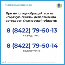 Сергей Морозов напомнил ульяновцам, что о проблемах на дорогах можно сообщить на «горячую линию» департамента автодорог Ульяновской области.