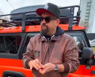 Он путешествует по России на ярко-оранжевом УАЗ Хантер.