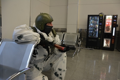 — По легенде учения сотрудник транспортного учреждения, являющийся пособником диверсионно-разведывательного формирования, захватил и удерживал в заложниках несколько человек в одном из помещений на территории аэропорта, в котором установил самодельное взрывное устройство.