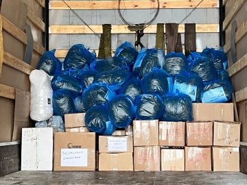 Всего было передано 40 маскировочных сетей, 6 коробок со средствами гигиены, 8 коробок с продуктами, мука, сахар и более 10 коробок окопных свечей.