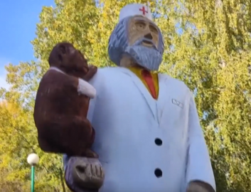 В августе, когда деревянная фигура доктора из книги Корнея Чуковского упала от старости, он дал поручение восстановить её. Теперь Айболита «вылечили», а чтобы ему не было скучно, добавили друзей – обезьянку и попугая.