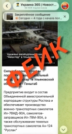 Ранее телеграм-каналы со ссылкой на Генштаб Украины распространили фейковую информацию о поражении завода «Авиастар» в Ульяновске.