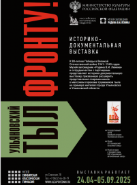 С 24 апреля в Ульяновске будет работать историко-документальная выставка «Ульяновский тыл – фронту». Она расположится в музее «Симбирская классическая гимназия» по адресу: Спасская, 18.