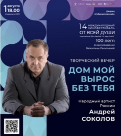 Творческий вечер «Дом мой вырос без тебя» состоится 1 августа во Дворце «Губернаторский». Начало в 18.00.