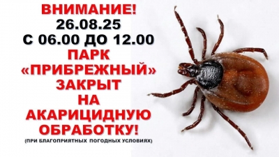 Во вторник, 26 августа, в парке «Прибрежный» состоится плановая акарицидная обработка территории.
