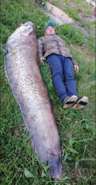 Сом весит 105 килограммов, а в длину составляет почти два с половиной метра.