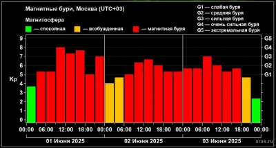 Впереди, согласно прогнозу ученых, Ульяновск ждет очередная магнитная буря. Под утро 5 июня ожидается слабая магнитная буря класса G1. При этом ближе к обеду магнитное поле успокоится.