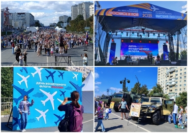 День Воздушного флота России сегодня отмечают фестивалем «Высший пилотаж» на Ульяновском проспекте, который перекрыли ради праздника. Погода благоволит — горожане пришли семьями и большими компаниями. Особо радовались дети — для них было множество игр, мастер-классов, развлекательных площадок. Взрослые предпочитали проводить время на фуд-корте — больше присесть и отдохнуть было негде.