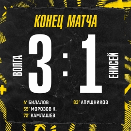 Итоговый счёт — 3:1 в пользу ульяновской команды. Счёт в начале матча открыл Билал Билалов, вскоре после перерыва Кирилл Морозов при розыгрыше углового удвоил преимущество «Волги», а в середине второго тайма отличился новичок команды Даниил Камлашев. Незадолго до финального свистка красноярцам удалось один мяч отыграть.