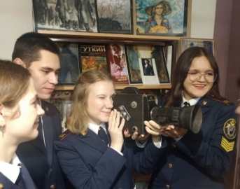 Ребята смогли посидеть за старинным столом журналиста, полистать газету "Красная звезда" выпуска апреля 1961 года. Особое впечатление произвела старинная кинокамера "Конвас-автомат"-главная кинокамера советского кино. На такую же камеру в августе 1961 года советский космонавт Герман Титов совершил первую ручную фото и видеосьемку Земли из космоса.