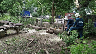 Сегодня спасатели МБУ "Управление гражданской защиты" устраняют последствия непогоды - вывозят рухнувшие деревья.