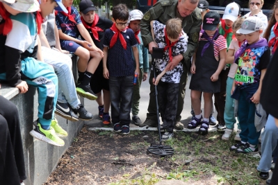 Дети с интересом обнаружили в земле предметы при помощи металлоискателя, нашли камеры прибором «Оптик 2», но особый восторг вызвало обнаружение только что оставленных ими отпечатков пальцев.