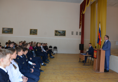 УФСБ России по Ульяновской области организовало встречу учеников кадетского класса городской школы № 9 с президентом Ассоциации организаций и ветеранов группы «Вымпел» Валерием Поповым.