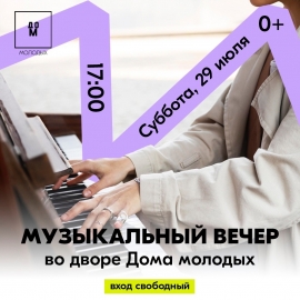 29 июля в 17:00 во дворике Дома молодых состоится концерт под открытым небом. Мелодии прошлых лет на синтезаторе исполнит музыкант-любитель Яна Телещук. Исполнительница расскажет посетителям интересные истории о каждой прозвучавшей композиции.