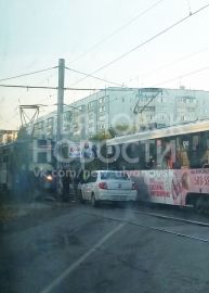 По информации свидетелей, на улице Рябикова автомобиль Datsun на переезде врезался в трамвай. Сведений о пострадавших пока не поступало, подробности ДТП выясняются.