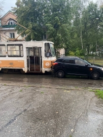 Авария произошла сегодня вечером на пересечении улиц Можайского и Гагарина. По предварительным данным, водитель легкового автомобиля не уступил дорогу трамваю. Электротранспорт временно пустили по улице Радищева.