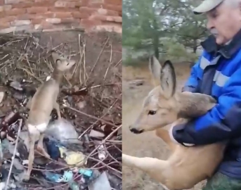 Там зверя выпустили в естественную среду обитания. Благодарная косуля сразу умчалась в лес.