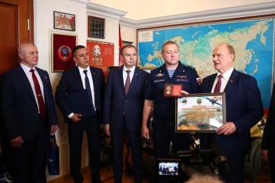 Также Геннадию Зюганову передали Медаль «За вклад в Победу в специальной военной операции» — с личной подписью командира 104-й дивизии, генерала, кавалера ордена Мужества Виктора Бабикова.