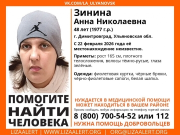 Анна Зинина 1977 года рождения пропала в Димитровграде 22 февраля 2026 года.