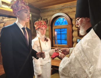 Настоятель храма игумен Серафим (Ляхов) совершил венчание курсантов 2 курса УИГА Романа и Ксении Брытковых.