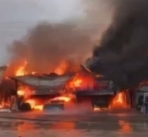 Произошел сегодня вечером в районе 18.00. Огнем уничтожен шиномонтаж и магазин автозапчастей, расположенные на улице Ленина. На месте ЧП работают спасатели. Информация о пострадавших уточняется. Экспертам предстоит установить причины возгорания.