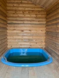 Работы идут по плану. На сегодняшний день собран сруб, установлены чаши и двери, завершена сборка крыши. Сейчас ведутся работы по обустройству входной зоны.