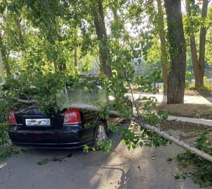 Автомобиль Toyota был припаркован у дома №22 по Киевскому бульвару. Вдоль многоэтажки расположена аллея тополей. Ветка одного из них обрушилась на иномарку.